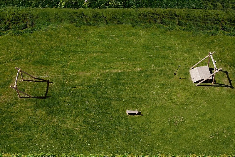 - Attrezzatura ludica da installare su superficie sostanzialmente pianeggiante o con leggero avvallamento e con un tragitto di min. 25,0 m.