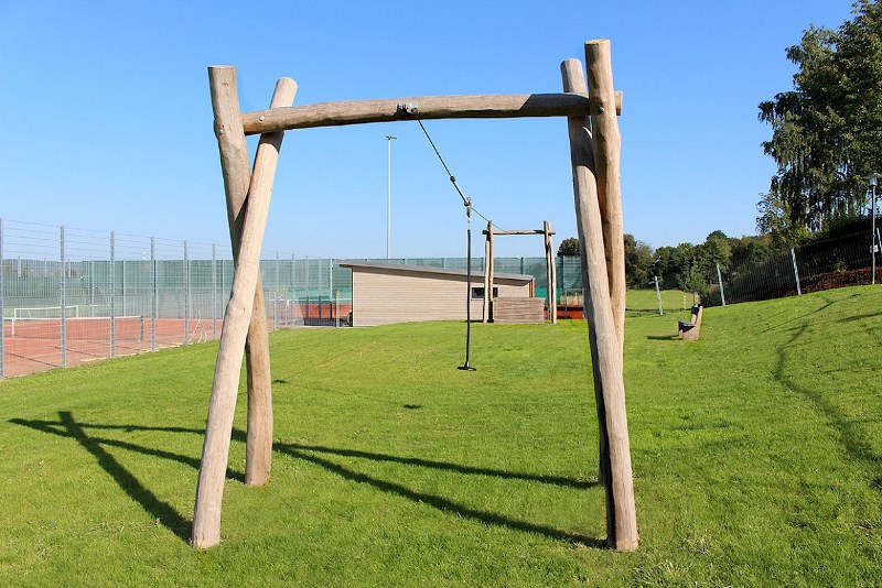 - Struttura ludica realizzata interamente in legno massello naturale di robinia Ø ca. 15 - 18 cm;