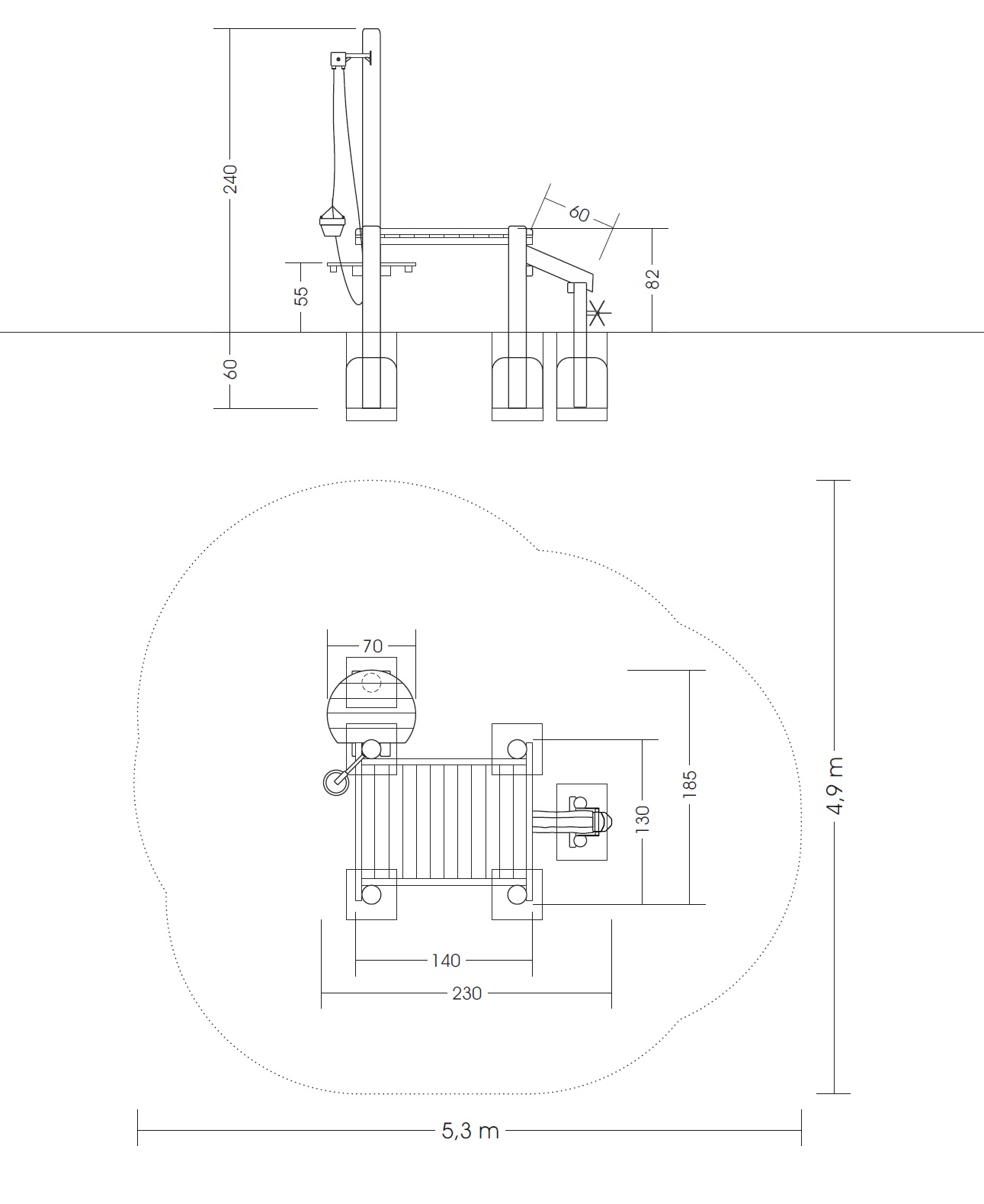 - Struttura per il gioco con la sabbia realizzata interamente in legno massello naturale di robinia.