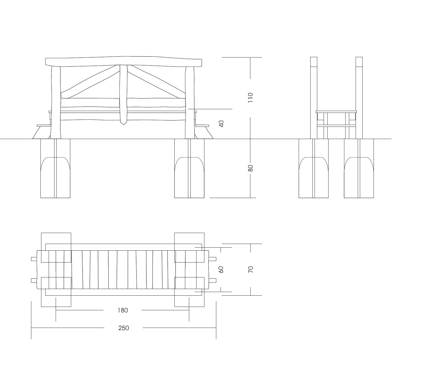 - lungh. tot. ca. 2,50 m, largh. tot. 0,70 m, h max tot. 1,10 m (altre misure a richiesta);