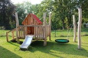 Per questa ragione è bene abbinare altre attrezzature ad una casetta (sedute, una scultura, giochi di manipolazione con la sabbia ...), per favorire la nascita di una ambientazione che saranno poi i bambini ad interpretare con la loro fantasia.